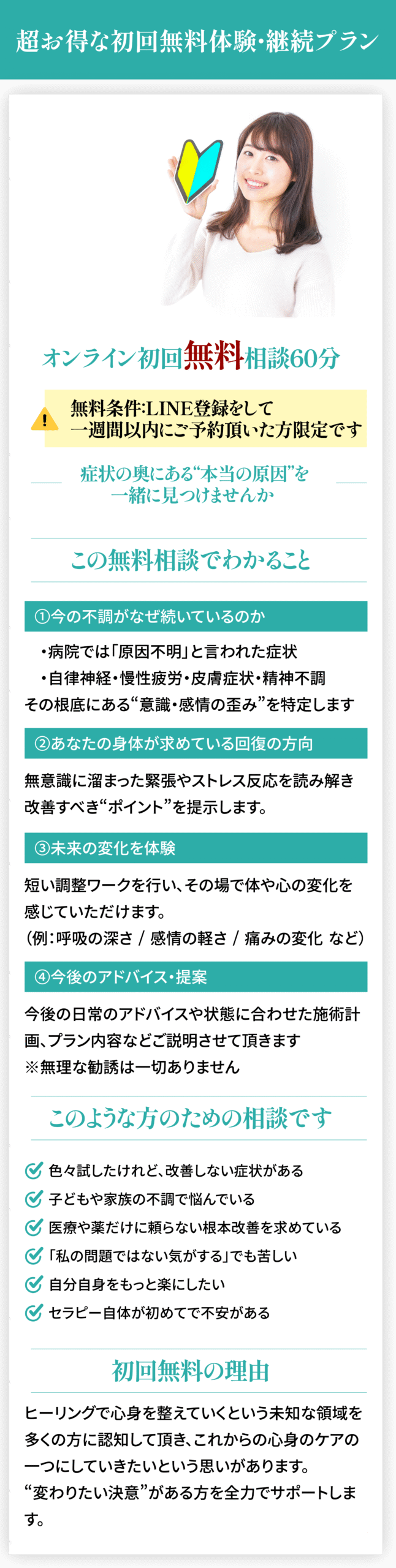 細かい詳細は初回セッション時、又はLINEで説明させて頂いています。